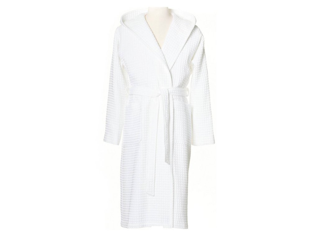 Bavlněný župan s waflovým vzorem PIQUÉE s kapucou, snow, L