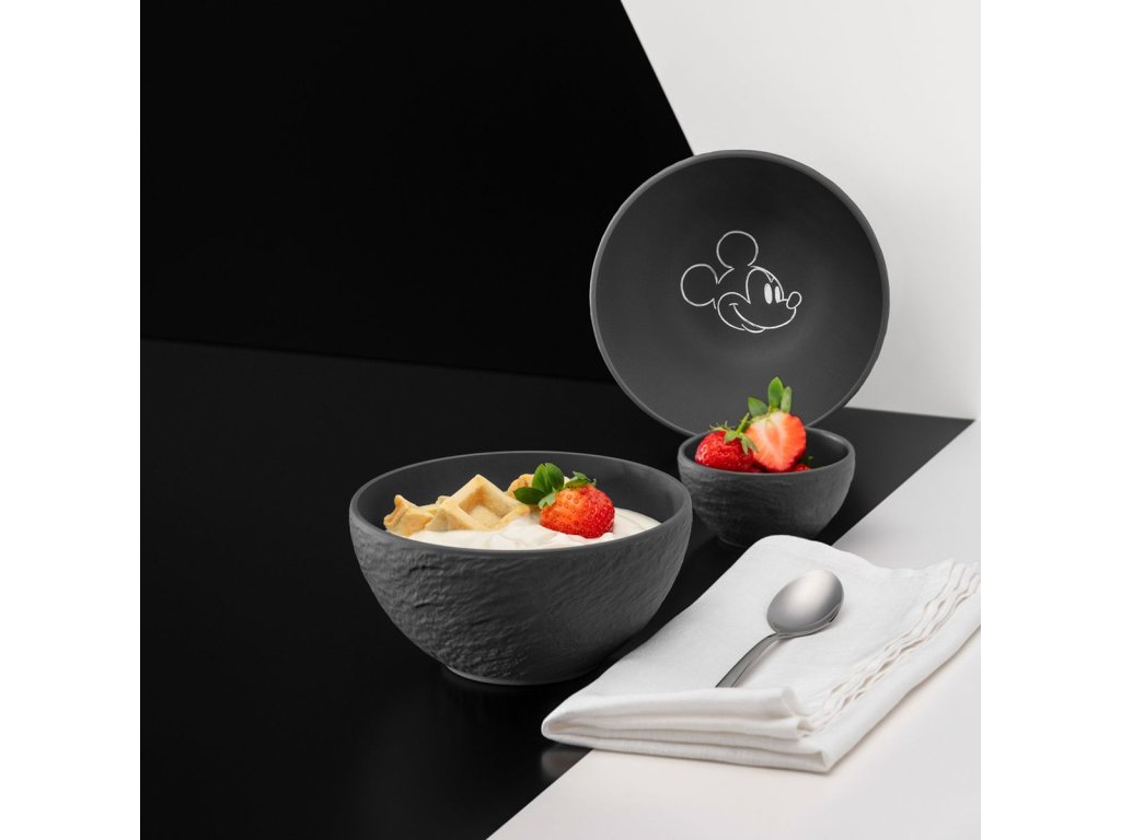 Miska na dip z kolekce MANUFACTURE ROCK – MICKEY MOUSE od značky Villeroy & Boch spojuje ikonický motiv Mickey Mouse s moderním matným designem. Černý porcelán s jemnou strukturou dodává stolování jedinečný a stylový charakter.