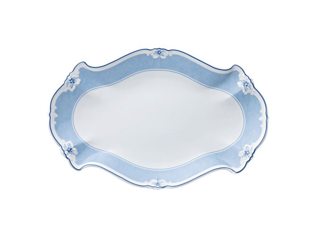 Elegantní porcelánový oválný servírovací talíř z kolekce BARONESSE ESTELLE zaujme nadčasovým designem a jemným bílo-modrým provedením. Je ideální pro servírování hlavních chodů, masa, příloh i slavnostních pokrmů.