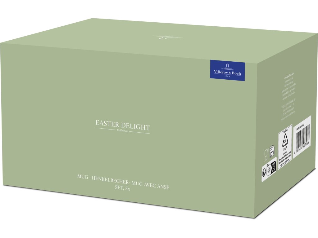 Vychutnejte si svou oblíbenou kávu nebo čaj ve dvojici stylových hrnků z kolekce Easter Delight od značky Villeroy & Boch. Tato elegantní sada přináší do vašeho domova svěží jarní atmosféru a spojuje tradiční řemeslné zpracování s okouzlujícím velikonočním designem.