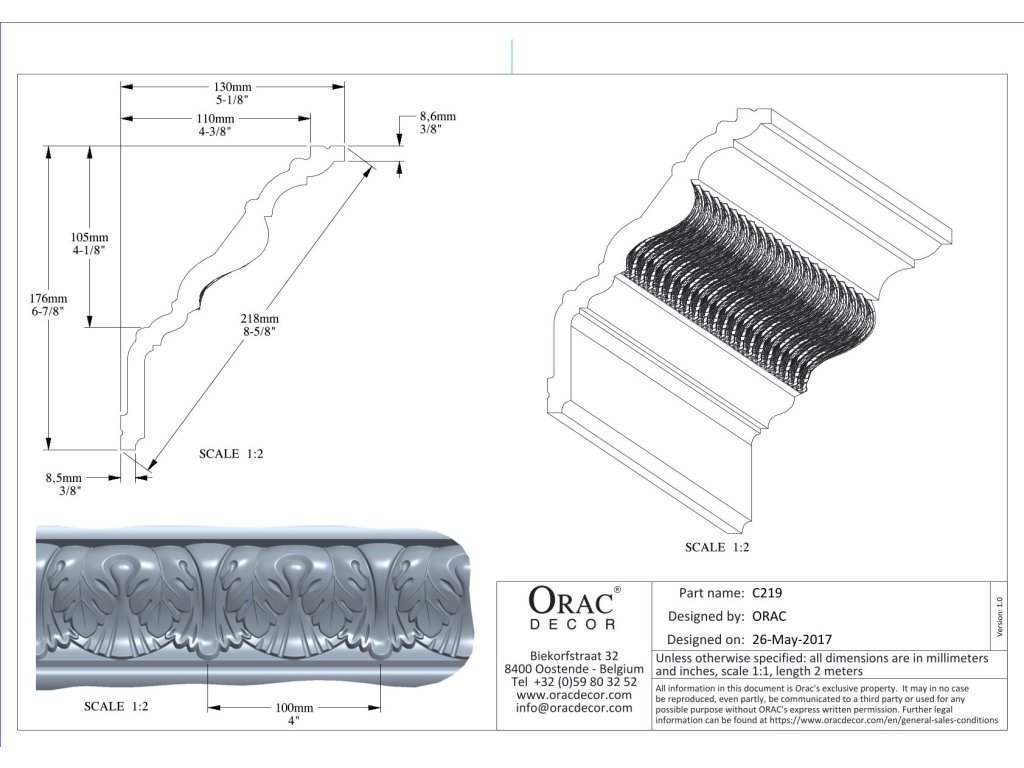 Ozdobná stropní lišta ORAC C219