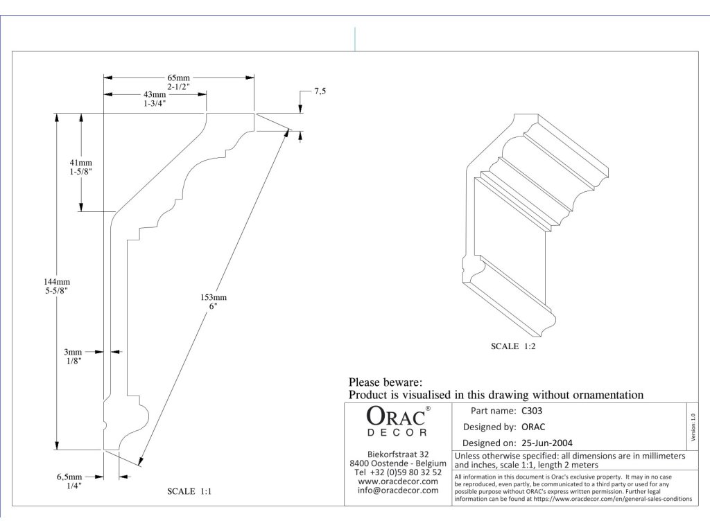 Ozdobná stropní lišta ORAC C303