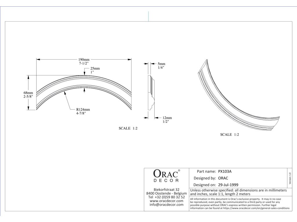 Roh ORAC PX103A pro lemovací lištu PX103