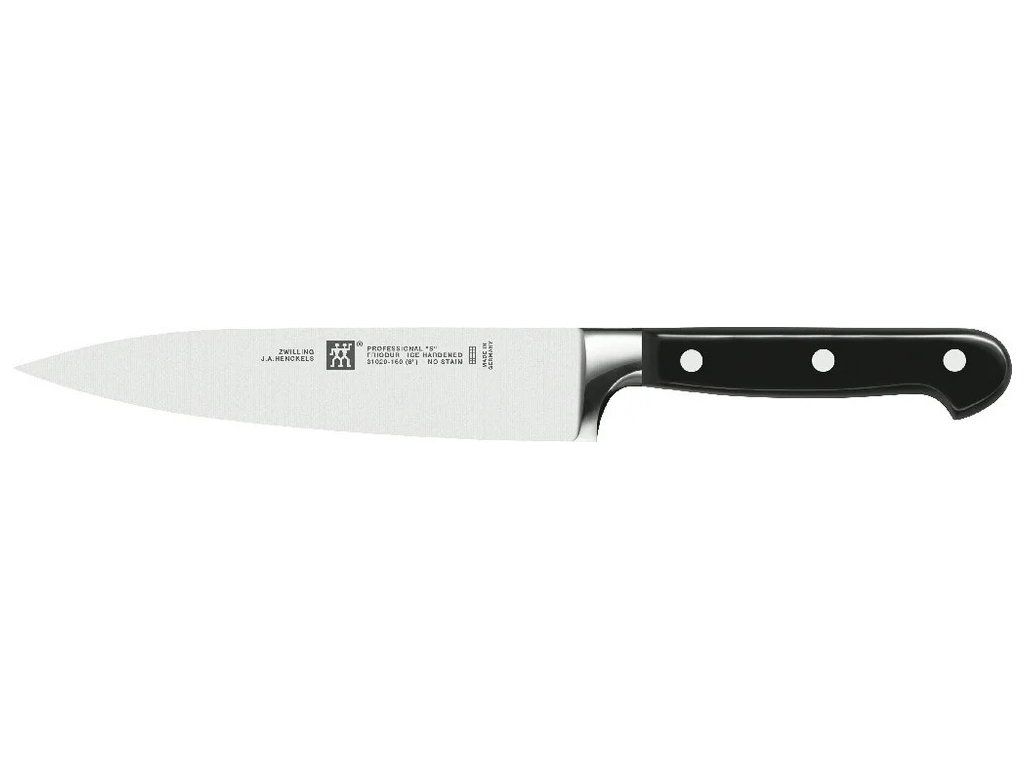 Nože z řady Professional „S“ jsou oblíbené mezi profesionálními kuchaři díky své kvalitě, odolnosti a tradičnímu designu. Jsou kované z jednoho kusu oceli, perfektně vyvážené a vybavené ergonomickou rukojetí se třemi nýty pro bezpečný a pohodlný úchop.